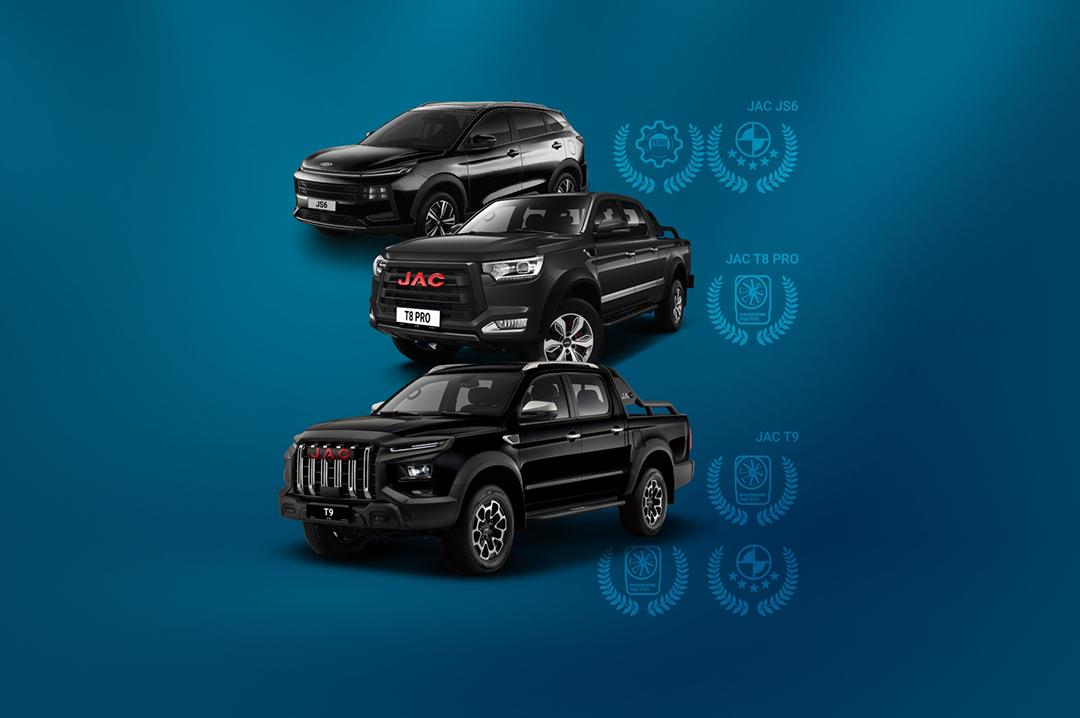 • Оба автомобиля JAC JS6 и JAC T9 – обладатели рейтинга 5 звезд от престижной премии C-NCAP (China New Car Assessment Program) — китайской программы оценки безопасности автомобилей, созданной Китайским центром автомобильных технологий и исследований (CATARC).